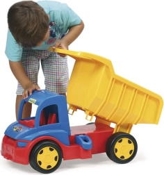 Otroško Kiparsko Velikanka 55 cm je velik tovorni avtomobil dolžine 55 cm, ki ga otroci obožujejo zaradi možnosti nakladanja, razkladanja in prevažanja svojih najljubših igrač. Opremljen je s sprednjim in zadnjim ročajem za priklop vozačka ali linije za vlečenje. Kiparska korba z udobnim ročajem omogoča enostavno upravljanje in neskončno število iger. S nosilnostjo do 150 kg je idealna tudi za poganjalčke – najmlajši se lahko usedejo na igračo in poganjajo z nogami. Robustna konstrukcija zagotavlja vzdržljivost, zato je idealna za igro zunaj in doma.