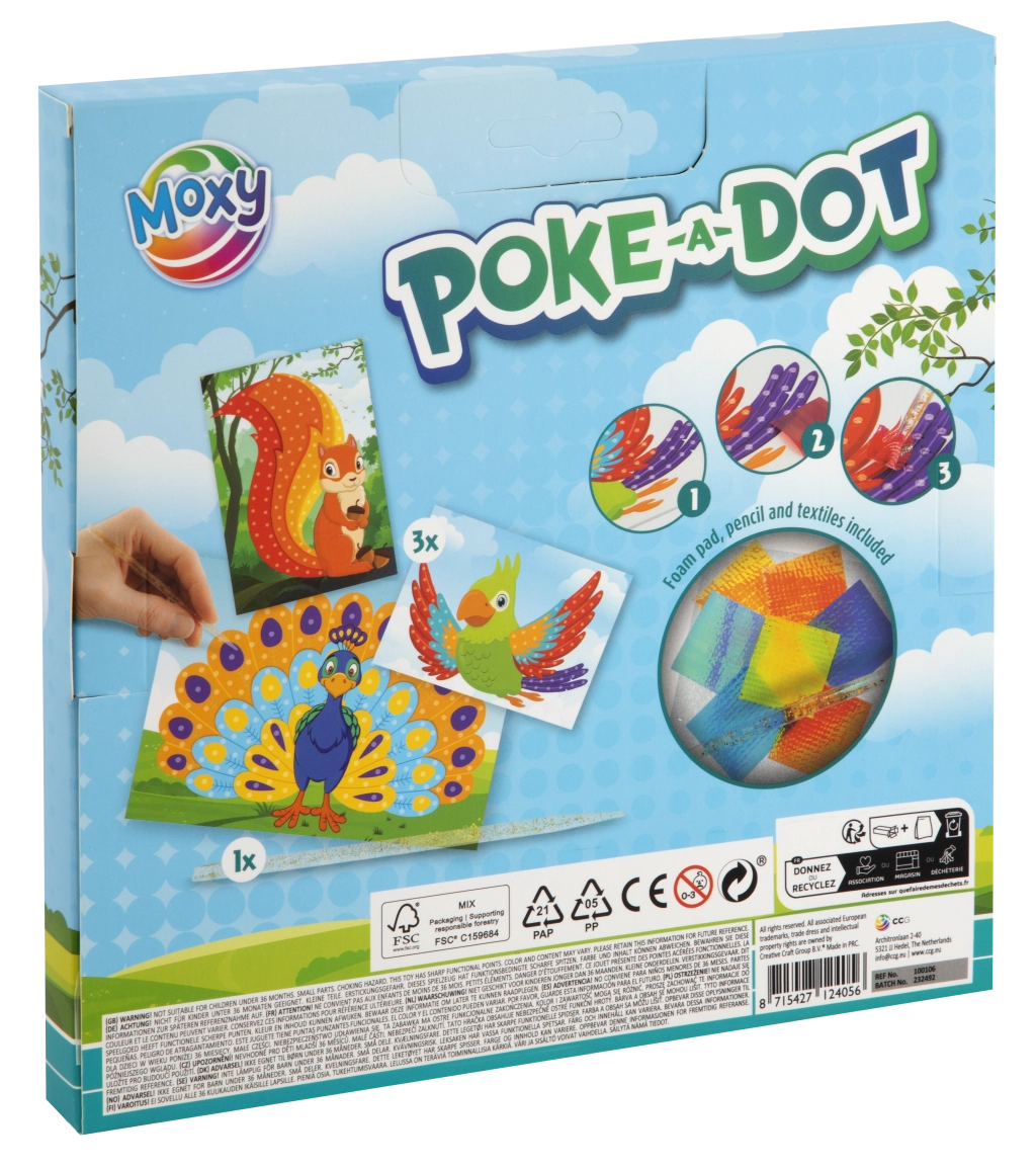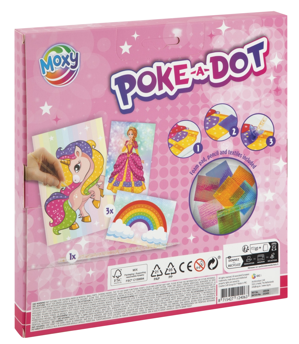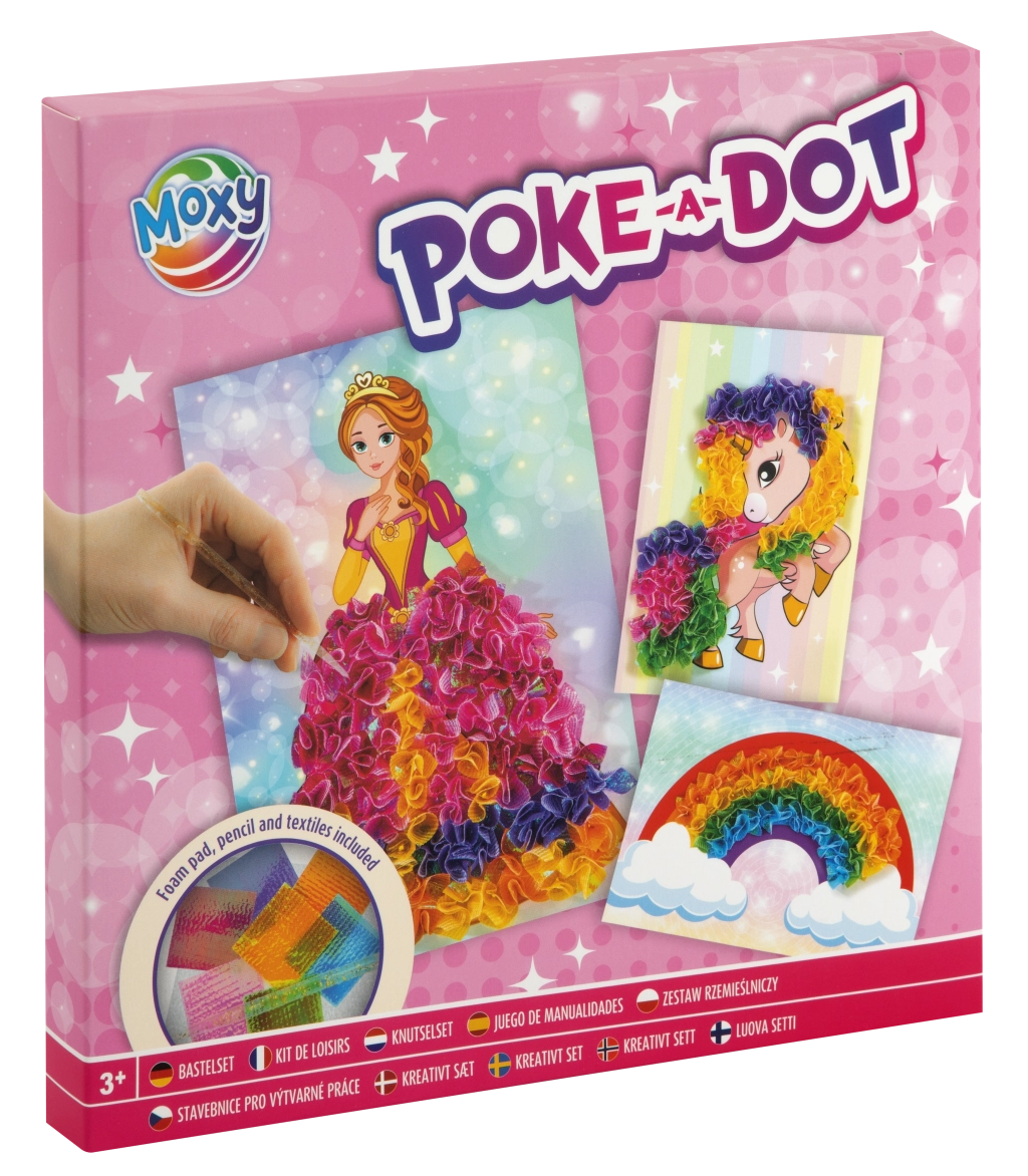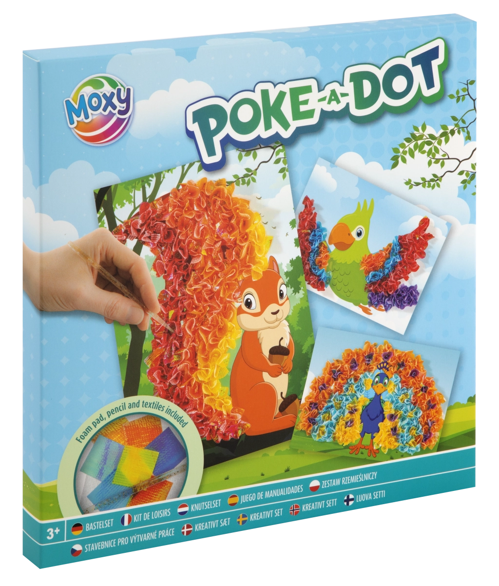 Vsebina pakiranja: - Peneča podloga s predtiskano sliko - Aplikator za vtikanje blaga - Raznobarvne tkanine - 3 slike velikosti 21 × 14,5 cm