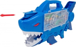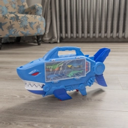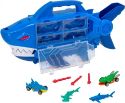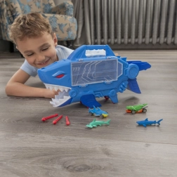 Spusti avtomobilček po notranji rampi in opazuj, kako švigne skozi odprta usta morskega psa. Hitra akcija in neskončna zabava.