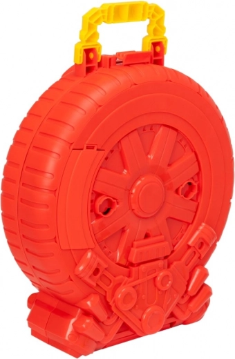 - Prenosni kovček v obliki kolesa, zložljiva igralna proga, 1× avtomobilček