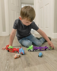 Tovornjak in avtomobilčki se ponašajo z edinstvenim dizajnom dinozavrov, ki spodbuja otroško domišljijo.