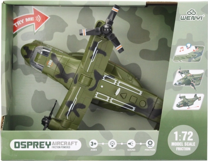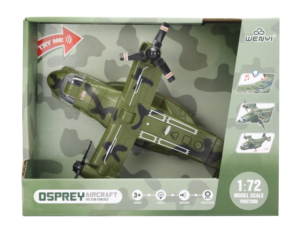 Podrobno izdelano vojaško letalo v merilu 1:72 ponuja realističen doživetje zahvaljujoč svetlobnim in zvočnim učinkom, ki vas potegnejo v akcijo.