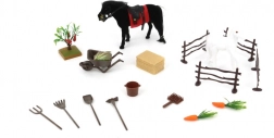 Set vsebuje vse potrebno za ustvarjanje lastne konjske kmetije, vključno z figurami konj, kmečkimi orodji in zelenjavo.