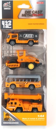 Ta komplet kovinskih in plastičnih mini vozil prinaša otrokom neskončne možnosti igre. Realistični detajli gradbenih in uporabnih strojev zasijejo pri vsaki dirki in pri gradnji domišljijskega mesta. Mehanizem pull-back deluje zanesljivo in je idealen za kratke in dolge proge po tleh ali mizi.