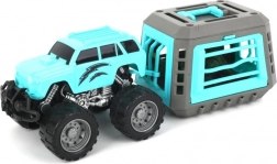 Robustno vozilo z velikimi kolesi obvlada vožnjo po preprogi in neravnem terenu. Prikolica s kletko se zlahka priklopi in odklopi za dinamično igro.