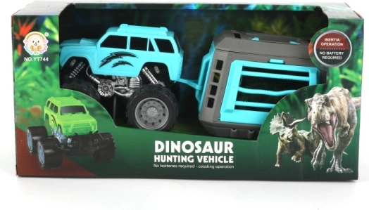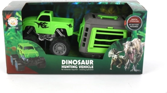 - Celovit set: terensko vozilo, prikolica/kletka in figurica dinozavra