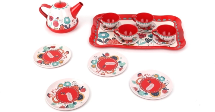Povabite prijatelje na elegantno čajanko! Ta otroški čajni set ponuja 15 skrbno zasnovanih kosov, ki popestrijo vsak popoldanski klepet. Stiloten servirni pladenj olajša postrežbo in celotni igri doda eleganco.