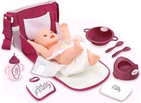 Ta ljubek komplet za nego punčke je zasnovan tako, da imajo otroci vse nujne pripomočke vedno pri sebi. Lahka in enostavno prenosna torba poskrbi za red in udobno shrani dodatke, vključno s priročno nameščeno stekleničko na strani, da je punčka kadarkoli pripravljena na hranjenje.