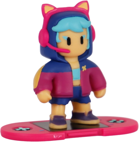 Vesele barve, bleščice in modni dodatki se srečajo z dinamičnim dizajnom likov STUMBLE GUYS – idealno za razstavljanje in igranje.