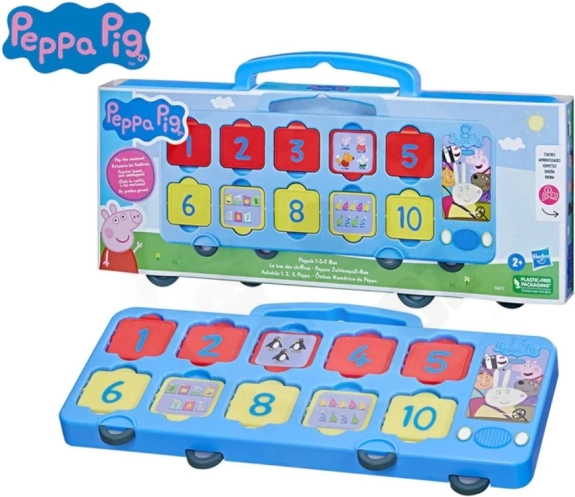 Odkrijte zabaven način učenja štetja z priljubljeno junakinjo Pujsa Pepa. Pisani avtobus 1–2–3 ima vrtljiva okenca s številko na eni strani in ustreznim številom predmetov na drugi. Priročni ročaj olajša prenašanje, zato lahko otroci igračo vzamejo s seboj kamor koli in naravno razvijajo štetje, fino motoriko in spomin.