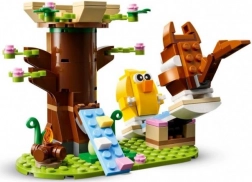 LEGO Spomladansko igrišče za živali je popolno darilo za otroke od osmih let naprej in starejše. Set vsebuje čebelo, ptice, hiško na drevesu, kurišče, gugalnico in dve velikonočni jajci. Otroci lahko živali spuščajo po rampi v hiško na drevesu, sedijo ob ognju ali se gugajo na gugalnici.