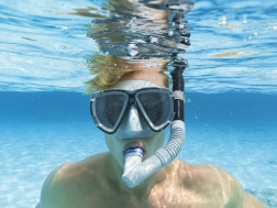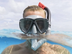 Ergonomska oblika maske in dihalke zagotavlja čvrsto prileganje brez kompromisov pri udobju.