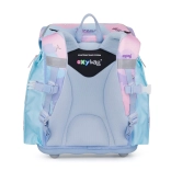 Lahek in praktičen šolski set za male šolarje z višino od 121 cm. Glavna aktovka tehta le 970 g, ponuja ergonomsko oblazinjeno hrbtišče, prsni in zatezne naramnice ter bogato organizacijo z magnetnim zapiranjem. Del seta sta tudi peresnica in vreča za copate z usklajenim motivom kolibrija.