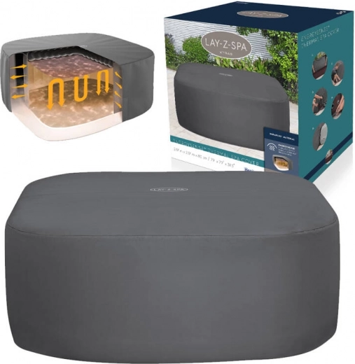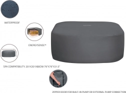 Termalni pokrov za kvadratne masažne bazene dimenzij 2,01 m x 2,01 m in višine 80 cm je idealna rešitev za povečanje učinkovitosti in zaščite vašega masažnega bazena. Zahvaljujoč dvoslojni toplotni izolaciji pokrov občutno varčuje z energijo.