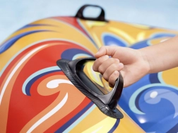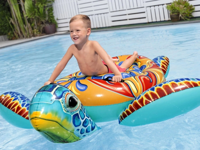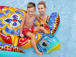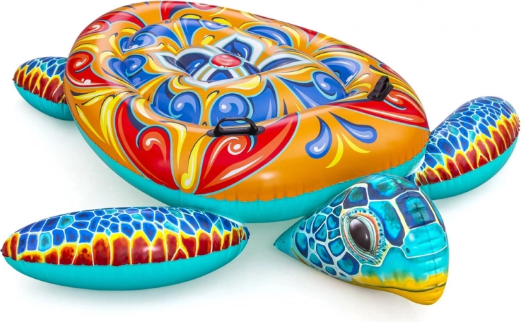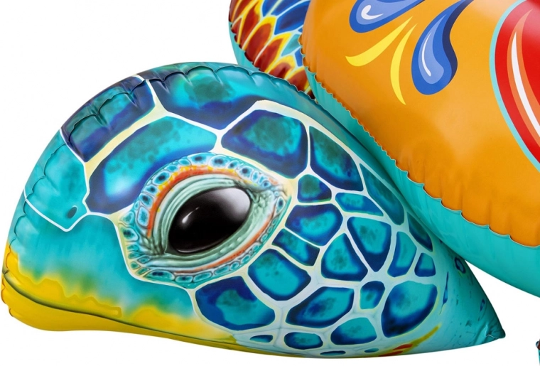 Barvit in privlačen dizajn spodbuja zabavo v vodi. Želva ima žive vzorce v rumeni, modri in rdeči barvi.