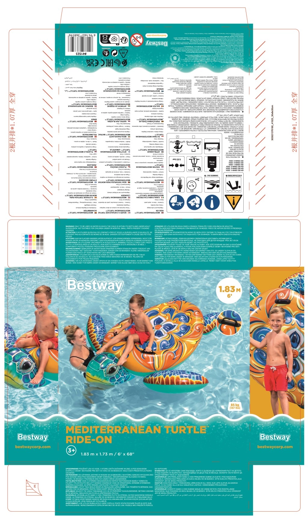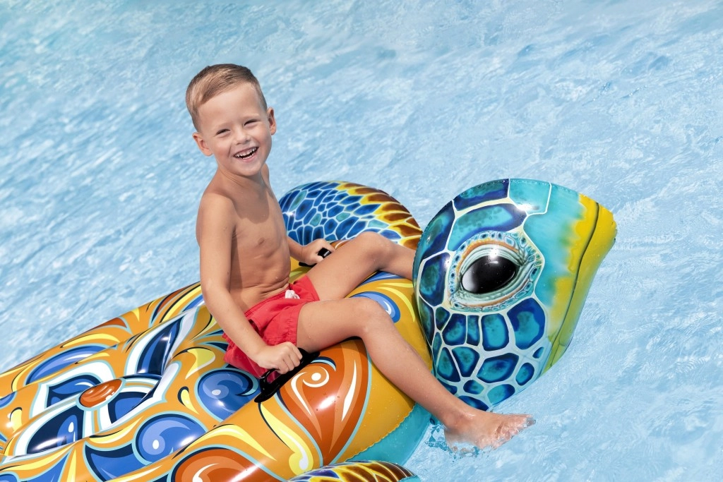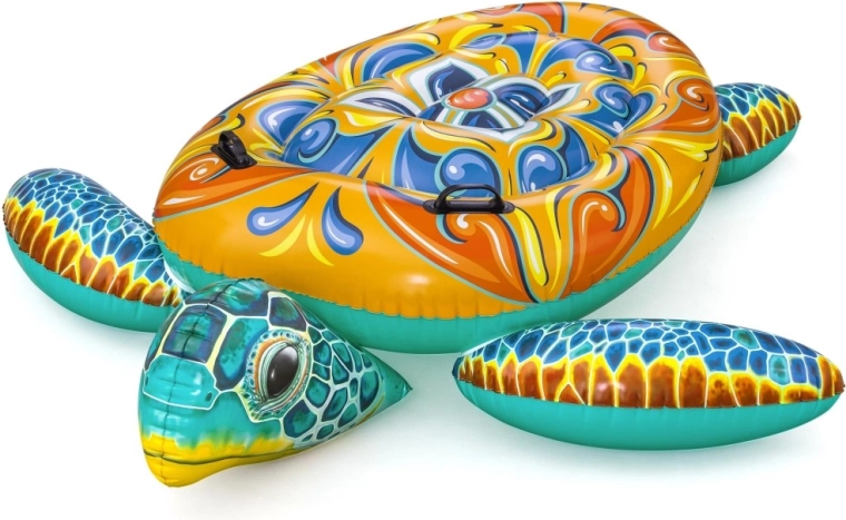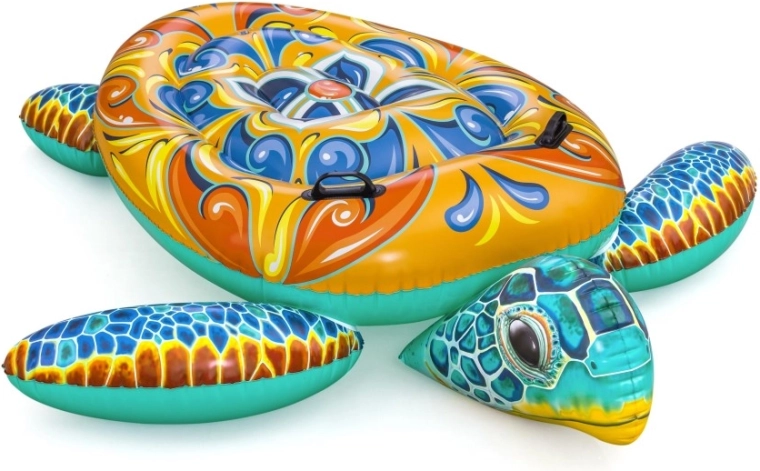 Uživajte v poletju z napihljivo plavajočo želvo BESTWAY z dekorativnim potiskom Majolika. Ponuja prostorno površino, 2 trdna ročaja za stabilnost in vzdržljiv PVC material. Odlična za bazen, jezero in morje – za zabavo in sprostitev otrok in odraslih do 85 kg.