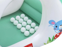 Hišica se ponaša z veselo barvno kombinacijo v odtenkih zelene, bele in rdeče. Streha v obliki mušnice služi ne le kot zaščita, temveč tudi kot prostor za razvrščanje kroglic, kar spodbuja koordinacijo roka-oko in uči osnovnih ročnih spretnosti. Del pakiranja je 15 lahkih kroglic, ki igro še popestrijo.