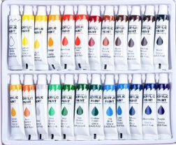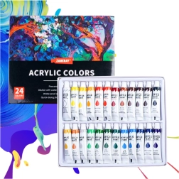 Kompleten set akrilnih barv za hobi in atelje: 24 intenzivnih odtenkov v praktičnih 12-ml tubah. Barve so bogato pigmentirane, hitrosušeče in odlično oprimejo različnih površin – od papirja in platna do lesa, stekla in kovine. Idealne za začetnike in profesionalce, s tubami s navojnim pokrovčkom proti izsuševanju.