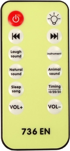 - Projektor zvezd in lune, melodije, zvoki živali, vrtenje obešank, nastavitev glasnosti, daljinsko upravljanje