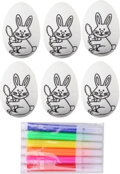- Vse v paketu – 6 jajčk + 6 flomastrov v živahnih barvah.