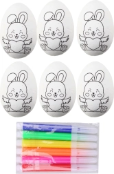 - Pripravljen set – 6 jajčk + 6 barvnih flomastrov.