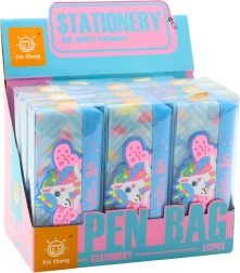 Modra naprava za pisalne potrebščine z motivom samoroga je idealna za shranjevanje vaših šolskih potrebščin. Izdelana je iz imitacije usnja, mehka, vzdržljiva in ustreza varnostnim standardom CE in EN71.
