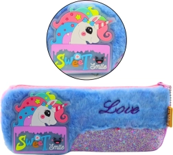 Ta čarobna plišasta peresnica v modri barvi z motivom enoroga in bleščečimi elementi je odlična izbira za vse šolske potrebščine. Mehka in prijetna na dotik, ponuja dovolj prostora za shranjevanje pisal, svinčnikov in drugih potrebnih pripomočkov.