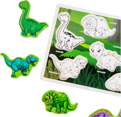 Lesena sestavljanka z dinozavri je odlična kombinacija zabave in učenja, ki podpira razvoj otrokove domišljije in ročnih spretnosti!