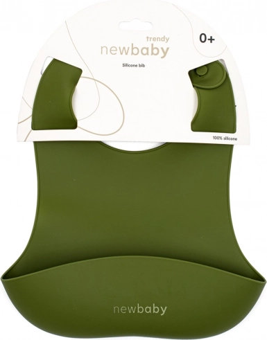 Stilni silikonski slinček New Baby v olivno zeleni barvi, 100% brez BPA. Lahek in nastavljiv za enostavno hranjenje.