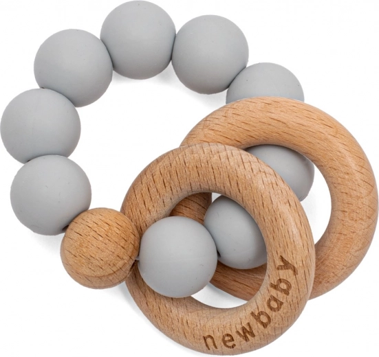 Grizalo New Baby siva združuje naravne materiale z varnim in funkcionalnim dizajnom, idealno za pomiritev razdraženih dlesni dojenčka.