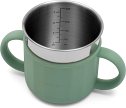 Prostornina skodelice je 220 ml, kar je idealna velikost za prve pijače vašega malčka. Ker je skodelica izdelana iz materialov najvišje kakovosti, prinaša zagotovilo, da bo prehrana vašega otroka vedno zdrava in varna.