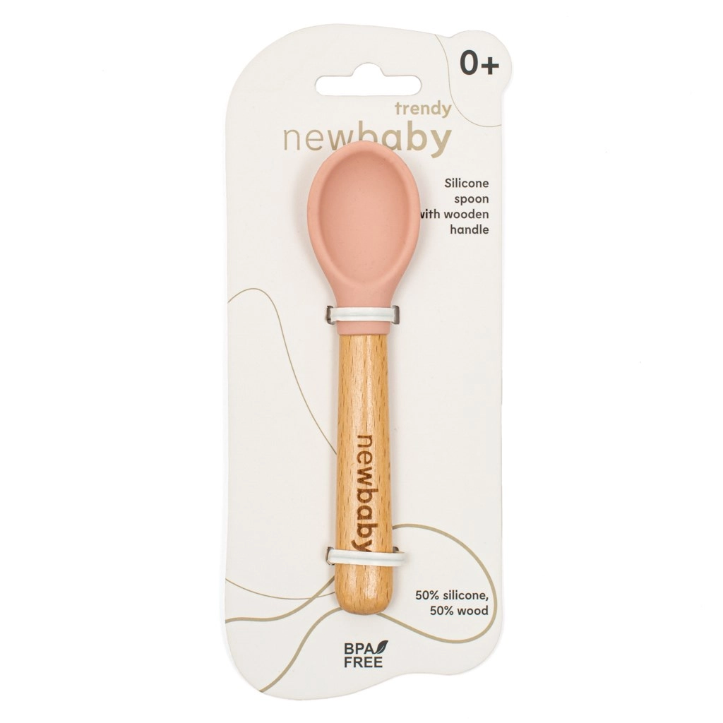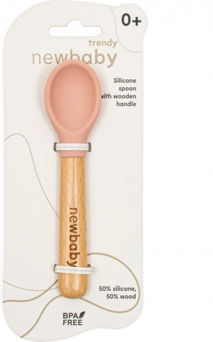 Otroška žlička iz linije New Baby Trendy ponuja kombinacijo lesnega ročaja z nežnim graviranjem logotipa in kakovostnega silikona brez BPA. Ta 14 cm dolga žlička je namenjena za preprosto in varno hranjenje otrok že od najzgodnejših let.