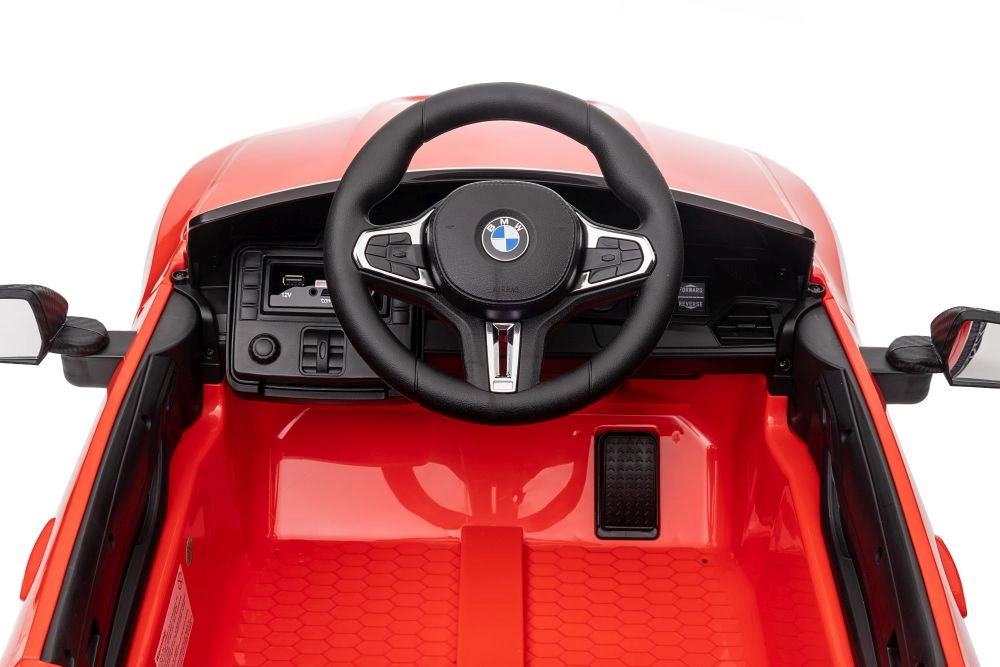 Avtomobilček je opremljen z volanom s prepoznavnim logotipom BMW in kontrolnimi elementi, ki podpirajo pristno vozniško izkušnjo in igrivo interakcijo.