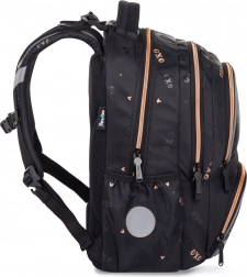 Nahrbtnik Oxy Next OXO je zasnovan tako, da otrokom zagotavlja udobje in red skozi celoten šolski dan. Ergonomsko oblikovan hrbtni panel (42 cm) ter mehke, nastavljive naramnice s prsnim pasom zagotavljajo pravilno prileganje na hrbtu in zmanjšujejo obremenitev. Odsevni detajli povečajo vidnost na poti v šolo in domov.