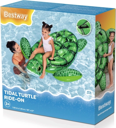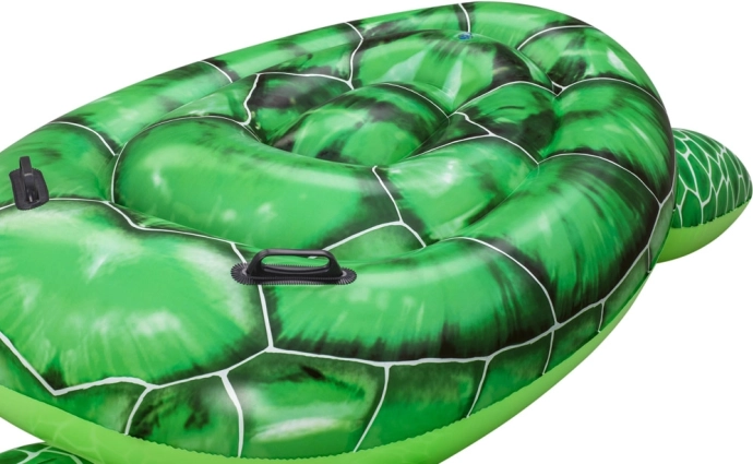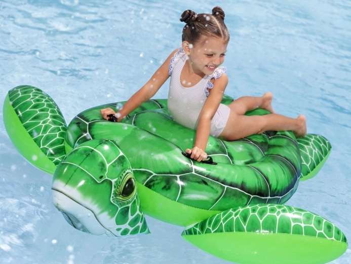 Napihljivo vodno ležišče v obliki želve je izdelano iz trpežnega PVC materiala, ki zagotavlja ne le vzdržljivost, temveč tudi varnost pri uporabi. Ležišče je opremljeno z ročaji za udoben in varen oprijem. Največja nosilnost je 45 kg, zato je primerno za otroke od 3 let dalje.