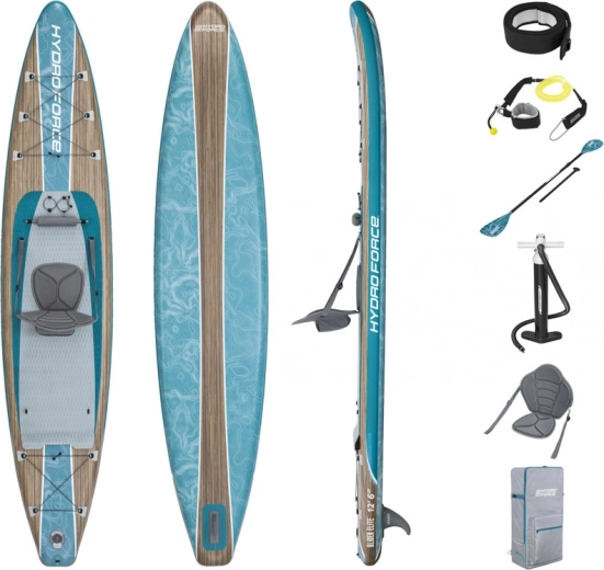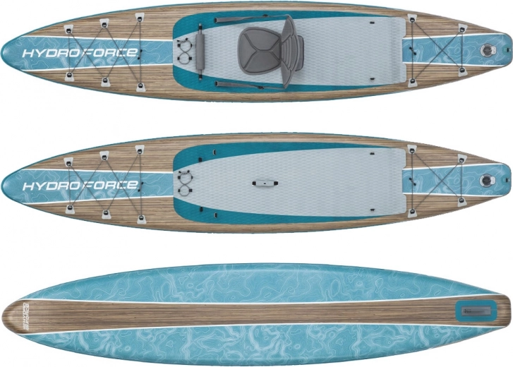Hydro-Force Glider Elite je zasnovan za dolge in gladke vožnje po mirni vodi. Njegova ozka oblika zagotavlja, da z lahkoto premaguje tudi daljše razdalje. SUP desko je mogoče spremeniti v kajak zahvaljujoč odstranljivemu sedežu in nastavljivi dolžini vesla. V kompletu sta dodatno vključena udobno naslonjalo in pumpa za enostavno napihovanje.