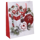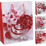 Ta srednja darilna vrečka z merami 26x32x10 cm ponuja štiri različne božične motive, ki vašim darilom dodajo nepozaben videz. Izdelana je iz kakovostnega materiala, ki zagotavlja trdnost in vzdržljivost, zato prenese tudi večjo obremenitev.