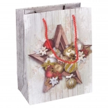 Božična darilna vrečka dimenzij 23x18x10 cm je idealna za zavijanje manjših daril, hkrati pa ohranja eleganco in čar božiča.