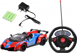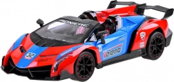 Privlačna rdeče-modro-črna karoserija z aerodinamičnimi linijami, spojlerjem in podrobnimi detajli. Vrata lahko odprete kar z upravljalnikom za še bolj realistično izkušnjo.