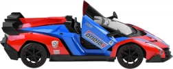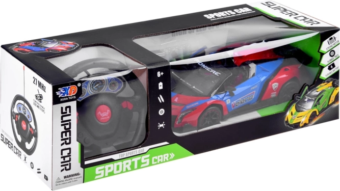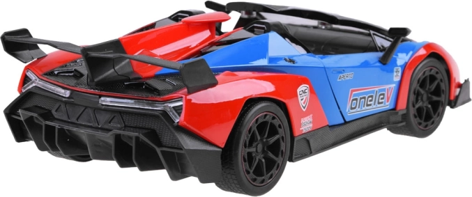 Športni daljinsko upravljani avto v privlačni rdeče-modro-črni kombinaciji je idealna izbira za male in večje voznike. Aerodinamična plastična karoserija, gumijaste pnevmatike in možnost nastavitve stekanja koles zagotavljajo stabilno vožnjo in zabavo za dolge ure.