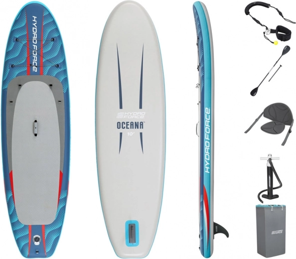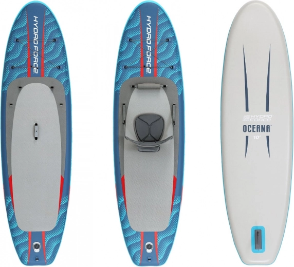 Univerzalni napihljiv paddleboard HYDRO-FORCE OCEANA 2v1 je idealen za rekreativno veslanje in daljše izlete. Zahvaljujoč čvrsti drop-stitch konstrukciji je lahek, tog in stabilen, hkrati pa se preprosto prenaša v nahrbtniku. V hipu ga spremenite v kajak s sedežem in naslonom, ne manjka protizdrsna stojišča, odstranljive smerne stabilizacijske plavuti, varnostni leash ter številne možnosti shranjevanja opreme.