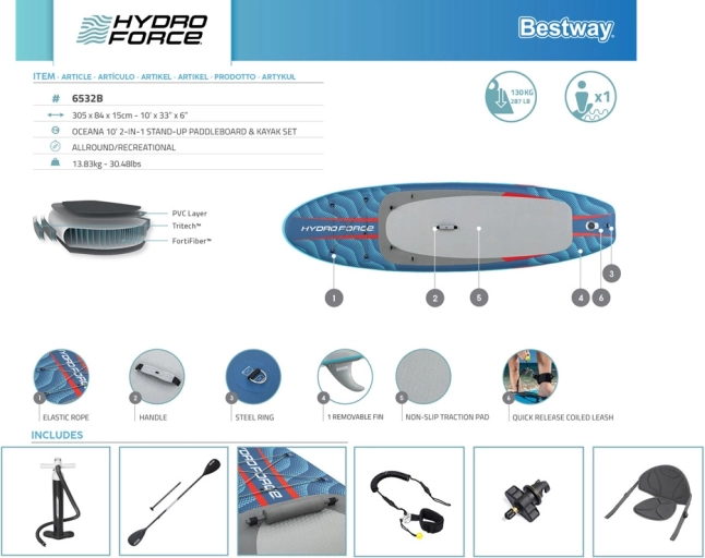 Napenljivi SUP HYDRO-FORCE OCEANA 2v1 s sedežem 305 × 84 × 15 cm