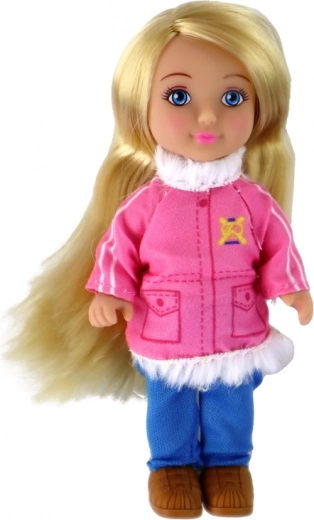 Ta bogat set prinaša otrokom ure domišljijske igre in zimskih zgodb. Glavna lutka z dolgimi svetlimi lasmi je oblečena v barvito zimsko jakno, rožnate hlače in drsalke, zato je pripravljena na drsališče in snežne radosti. Gibljivi udi omogočajo realistično poziranje in preprosto ustvarjanje prizorov.