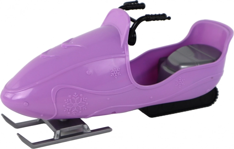 Podrobno izdelan vijolični snežni skuter z motivom snežink prinaša dinamično igro in nove scenarije zimskih pustolovščin.