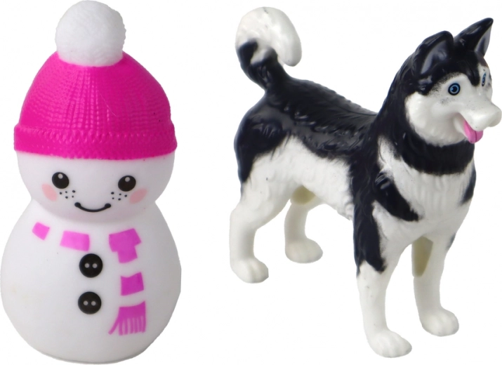 Del seta so tudi mala lutka, vesel snežak, kužek husky na povodcu in rumene sani/voziček za psa. Za akcijsko vožnjo skrbi podrobno izdelan vijolični snežni skuter z zimskim dizajnom. Dve čeladi zagotavljata varno igro, dodatki pa podpirajo razvoj domišljije in fine motorike.