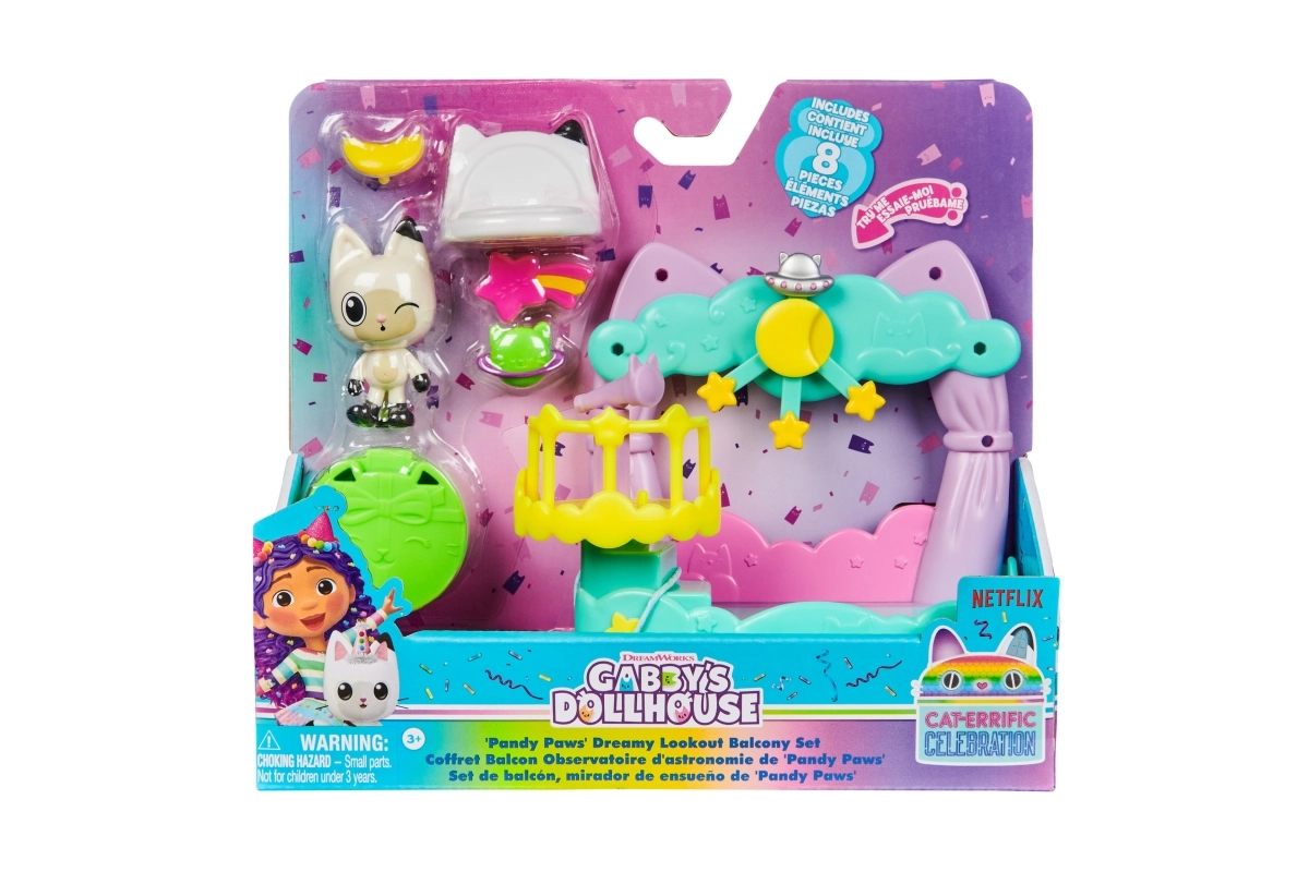 Razširite svoj Gabin mačji domek z balkončkom, od koder lahko mucek Pandoušek opazuje zvezde s teleskopom in ograjo okrasi s simpatičnimi visečkami. Set je idealen za male oboževalce Netflixove serije, ki imajo radi ustvarjalno pripovedovanje in zbiranje figuric, pohištva in tematskih sobic.