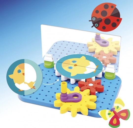 Odkrijte igrivi gradbeni komplet z ogledalom, kjer vsak obrat koleščka ustvari čarobne vizualne učinke. QUERCETTI MIRRORELLO razvija fino motoriko, ustvarjalnost in logično mišljenje otrok od 4. leta dalje s pomočjo barvnih zobnikov, ročice in ilustriranih ploščic, ki se v ogledalu spreminjajo v fascinantne podobe.