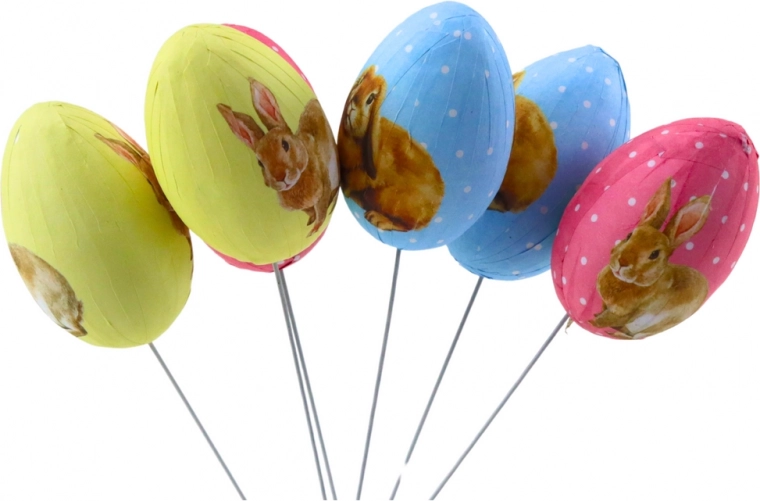 Jajčka so na voljo v pastelnih barvah rumena, modra in roza, ki bodo polepšala vsako dekoracijo.