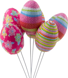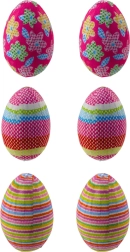 Komplet vsebuje jajca s pikami, črtami in cvetličnimi motivi za barvito velikonočno dekoracijo.