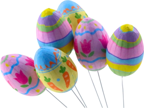 Jajčka so opremljena z žičkami, ki omogočajo enostavno namestitev v različnih dekoracijah, kot so cvetlične aranžmaje ali venci.